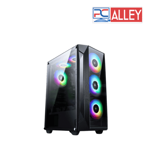 The Keytech T1000 ROG Tempered Black case delivers the perfect blend of modern aesthetics, airflow, and durability. Featuring a tempered glass side panel and stylish ROG-inspired RGB accents, it’s built to highlight your gaming components in full view.