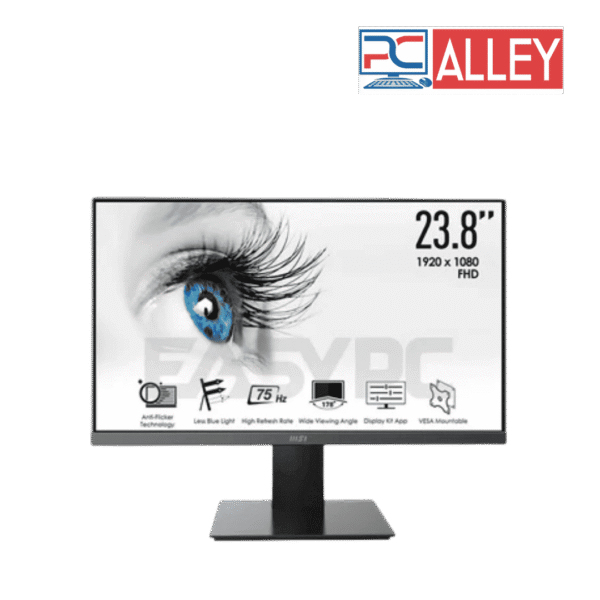 The MSI PRO MP241X is a 23.8-inch Full HD monitor built to deliver a balanced mix of clarity, comfort, and versatility — ideal for productivity tasks, multimedia, casual gaming, and everyday use. Its 1920×1080 resolution produces sharp details and crisp text, whether you’re browsing, editing documents, or watching videos. The display panel is VA-based but marketed as “IPS-grade”, offering wide 178° viewing angles and stable color representation. MSI Storage Asset+2PC Case Gear+2