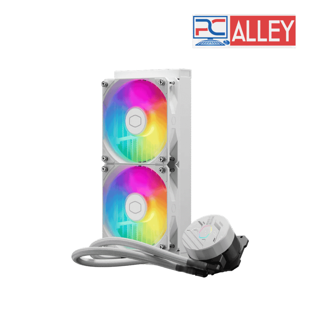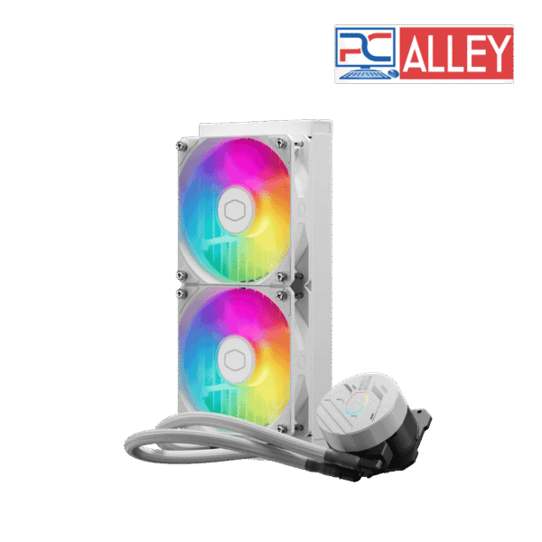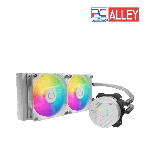 Efficient 240mm ARGB liquid CPU cooler by Cooler Master. Ensures optimal cooling for high-performance CPUs with customizable ARGB lighting. Sleek white design fits modern PC builds.
